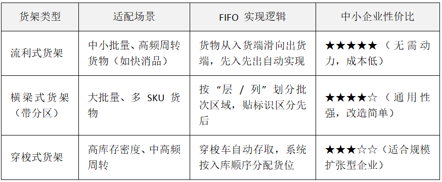2. 货架选型:低成本适配 FIFO 的核心工具